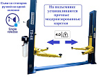 Гарантия до 36 мес. В комплекте: гидравлический насос + тросы двойной свивки с металлическим сердечником ≥10т на разрыв. Срок службы не ограничен. Съем со стопоров – ручной. Тросом на каждой колонне. Модернизированные прочные каретки. Прямые лапы. Цвет синий + жёлтый. Подъём 110÷1920 мм. Между колоннами 2806 мм. г/п -4,0 тонны.