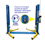 Гарантия 36 мес – наш монтаж, 24 мес – самостоятельная установка. Срок эксплуатации – не ограничен. Усиленная конструкция подъемных кареток. Снятие и установка на «стопора» с пульта управления (электростопора - экономия времени) + подхваты (лапы) – 2 прямых + 2 угловых + увеличенный подъем авто до 1825 мм + увеличенный проезд 2560-2820 мм. 220/380В. г/п. 4 тонны.