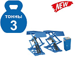Заглубляемый «ровный пол», грузоподъемность 3 тонны. Для слесарных, кузовных, шиномонтажных работ и зоны приёмки. Оборудован пневматическим стопорным механизмом – требуется подключение к пневмолинии. Раздвижные трапы подъемника позволяют увеличить длину платформ с 1550 до 1750мм. Высота подъема 2130мм, от уровня пола 1800мм., заглубление 330 мм. Расстояние между платформами 780 мм. Длина трапов в сложенном состоянии 1580 мм. Стойка управления подъемником расположена отдельно. В комплекте резиновые накладки (4шт.).
