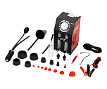 Мощная модель дымогенератор для авто, специально предназначен для опрессовки впускного и выпускного коллектора двигателя (впускного и выпускного тракта), а также для обнаружения течи в любых системах,внутри которых содержится воздух,возникающей в результате разрушений, рассоединений, износа прокладок,уплотнений и т.д. Технические особенности генератора дыма позволяют создавать мощный, густой поток дыма на продолжительное время. Это отличает данный дымогенератор от дешевых аналогов, выполненных в виде колбы (цилиндра). Оснащен регулятором давления с манометром,регулятором потока дыма,трехступенчатым регулятором мощности.