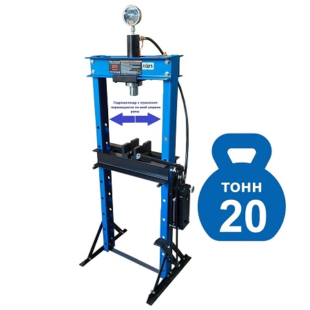 Гидравлический. Ручной привод. Насос — 2 плунжера. 1 — для быстрого подведения к деталям; 2 — для точного дозирования усилия ответственных деталей (подшипники). Гидроцилиндр с пуансоном перемещается по ширине рамы. Рекомендуется для выпрессовки подшипников, деталей машин, втулок и т.п. в гараже, автосервисе. Усилие 20 тонн. Ход поршня 0-150 мм. Большое рабочее окно 500х1030 мм. Доставка по РФ и ТС. Гарантия 12 мес.