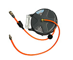 Катушка для воздуха. Металлический корпус, внешний диаметр Ø33 см, широкое внутреннее пространство и легкость подкатки, без усилия. Угол поворота шарнирного механизма 180° обеспечивает широкую рабочую зону захвата. Длина шланга: Ø15 м. Диаметр: Ø8 х Ø12 мм. Резьба : 1/4".