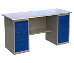 Верстак двухтумбовый 1600 ML0/ML4 поставляется в разобранном виде (4 элемента). Нагрузка на столешницу до 600 кг. Стандартный цвет: корпус - серый глянец RAL 7030, ящики и двери тумб - синий RAL 5017. Размеры: 855x1600x700 мм. Масса: 97 кг.