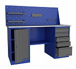 Двухтумбовый. Допустимая нагрузка на столешницу 1000 кг. Опорные элементы выполнены сварными из холоднокатаной стали. Для выполнения сборочных, ремонтных, слесарных, монтажных и других видов работ на производстве, в сервисных центрах, мастерских, гаражах, а также для обучения технологии в учебных заведениях. Комплектуется полкой-стенкой, расположенной под столешницей для удобного размещения габаритного инструмента и оснастки. Размеры верстака: 855x1596x696 мм. Вес: 108 кг. Поставляется в 4 комплектациях на выбор.