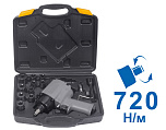 Гайковерт пневматический, ударный, шиномонтажный 1/2”, крутящий момент - 720Нм. + Головки - 9, 10, 11, 13, 14, 17, 19, 22, 24, 27 мм. Полностью металлический корпус. Для жестких условий эксплуатации в шиномонтажных мастерских, автосервисах и производственных предприятиях. Механизм – Twin Hammer(двойной молоток). Реверс, регулировка скорости, регулировка крутящего момента.