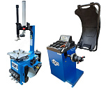 Комплект из полуавтоматического шиномонтажного стенда TS-21, для колёс 99% автопарка России. Для дисков: 11÷20”. В комплекте: пистолет для подкачки шин + монтажка + пластиковые накладки на зажимные кулачки + регулятор давления с влагоотделителем и манометром. + TS-550 Балансировочный станок (с лазером) Для дисков: 10÷24” (254-609 мм). В комплекте: кожух с автозапуском + клещи + кронциркуль + быстрозажимная гайка + набор конусов.
