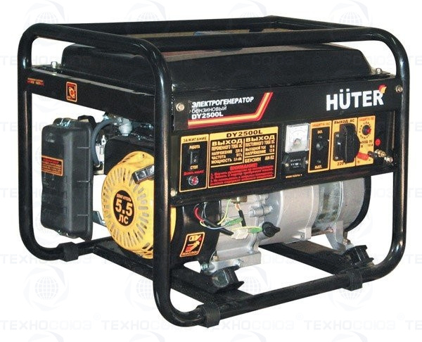 Бензиновый генератор HUTER DY2500L является компактным и мобильным автономным источником переменного тока бытовых параметров (220 В/ 50 Гц), а так же постоянного тока (12 В). Его вес составляет всего 41 кг. Он оснащен четырехтактным поршневым бензиновым мотором принудительного воздушного охлаждения с ручным запуском, топливным баком на 12 литров, щеточной синхронной генераторной машиной мощностью 2000 Вт, вырабатывающей переменный ток, вольтметром и системами безопасности и контроля.