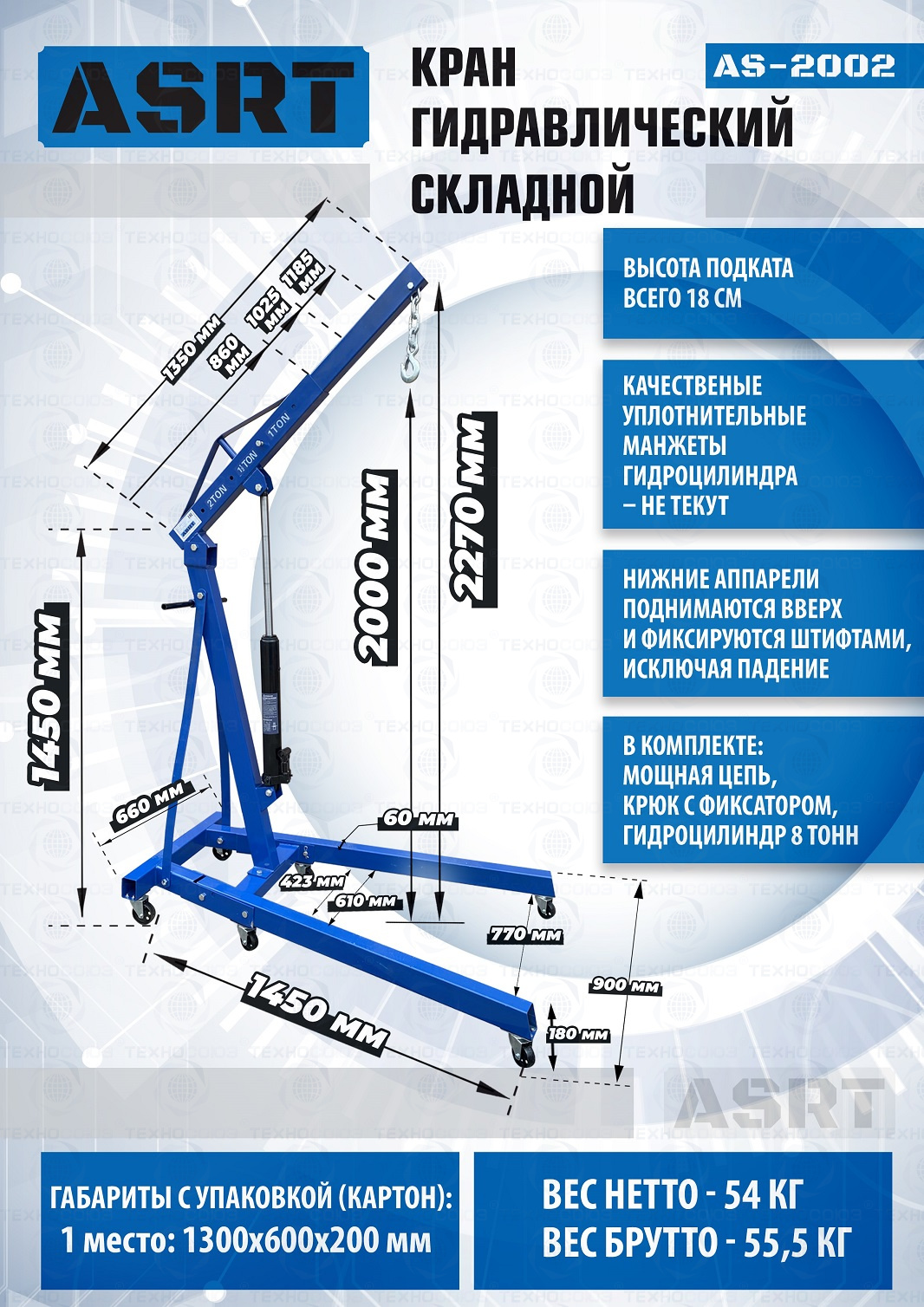 Особенности конструкции AS-2002 кран гаражный гидравлический складной 2 тонны: