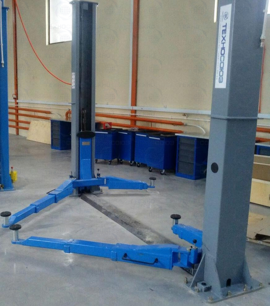 Колонны подъемника оснащены стопорным механизмом, предотвращающим падение автомобиля.