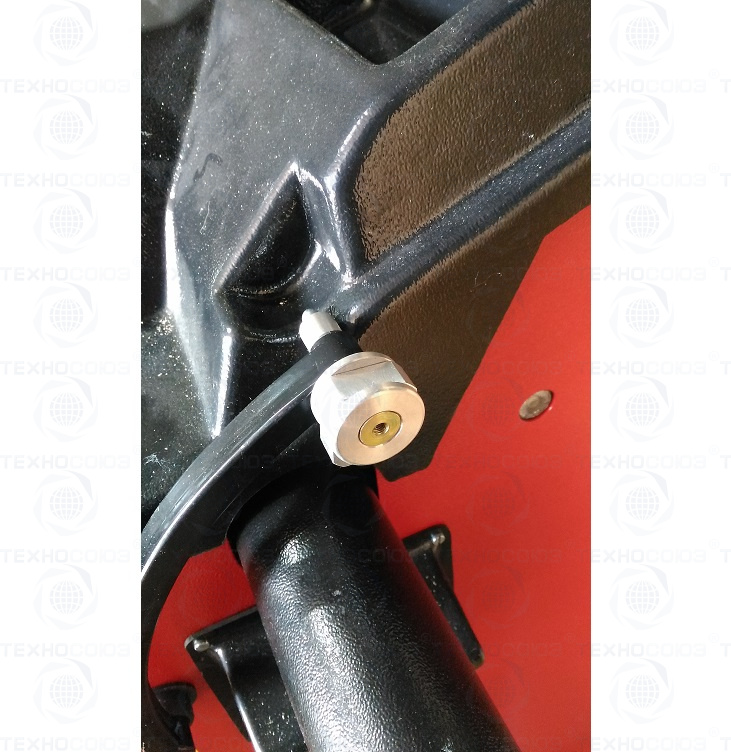 • Пневматическое устройство для закрепления колеса на валу, заменяющие резьбовую шпильку и быстросъемную гайку. Такое устройство, во-первых, сокращает время закрепления колеса на валу станка и, во-вторых, обеспечивает постоянное усилие зажатия колеса, независимо от усилия, прикладываемого оператором к рукоятке зажимной гайки.