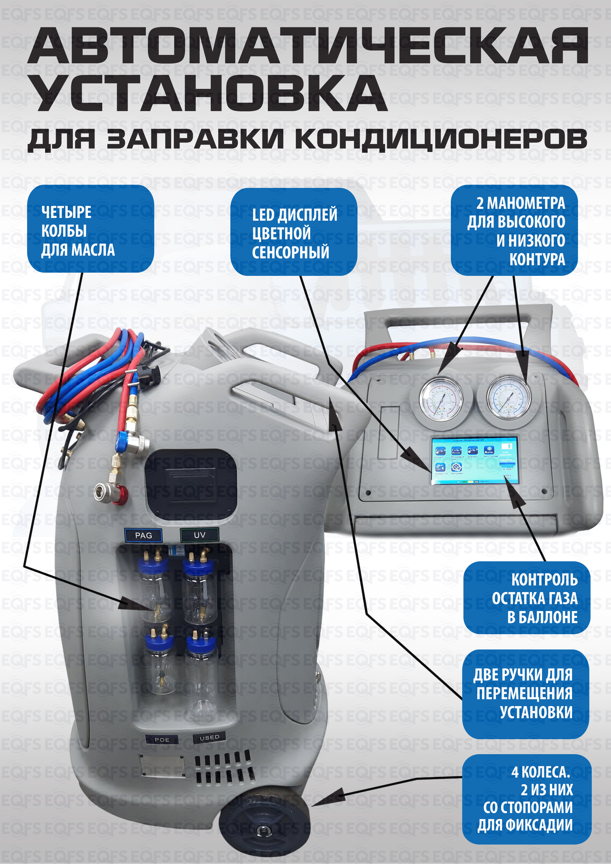 Станция для заправки автомобильных кондиционеров позволяет производить полное обслуживание систем кондиционирования воздуха автомобилей с хладагентом марки R134A. Автоматическая станция для заправки автокондиционеров ES-9A может выполнять заправку системы кондиционирования легкового и коммерческого транспорта с объемом системы не более 1 кг. Данная установка не заправляет автобусы и рефрижераторы.