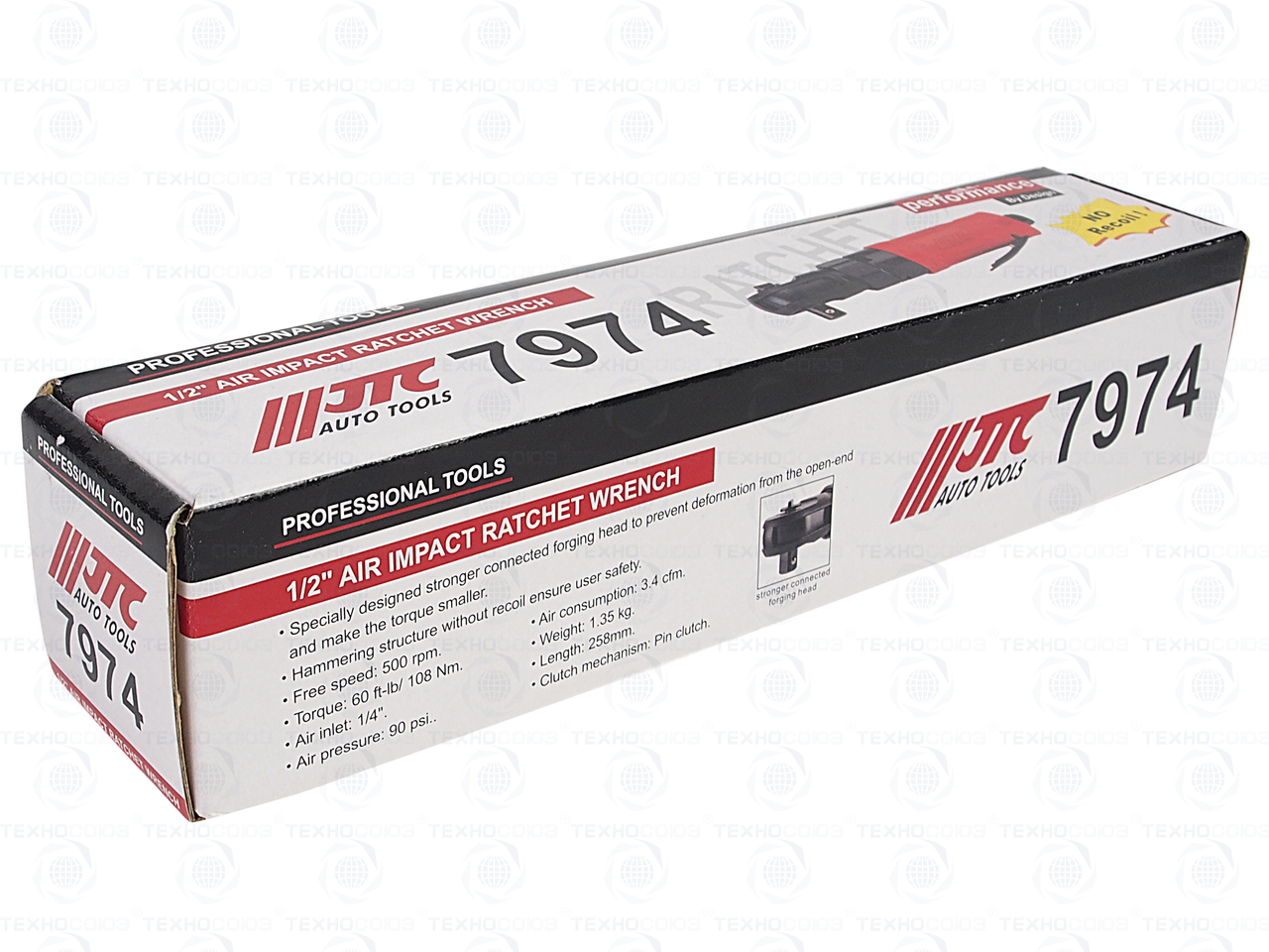 КЛЮЧ ТРЕЩОТКА ПНЕВМАТИЧЕСКИЙ 1/2" 108НМ 190PSI 500ОБ/МИН. УСИЛЕННАЯ УДАРНАЯ, JTC-7974