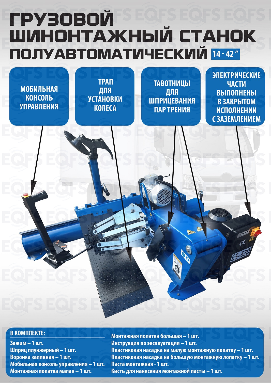 Комплект ES-52D Шиномонтажный стенд грузовой 14-42”, 380В+ES-850 Балансировочный станок 380V
