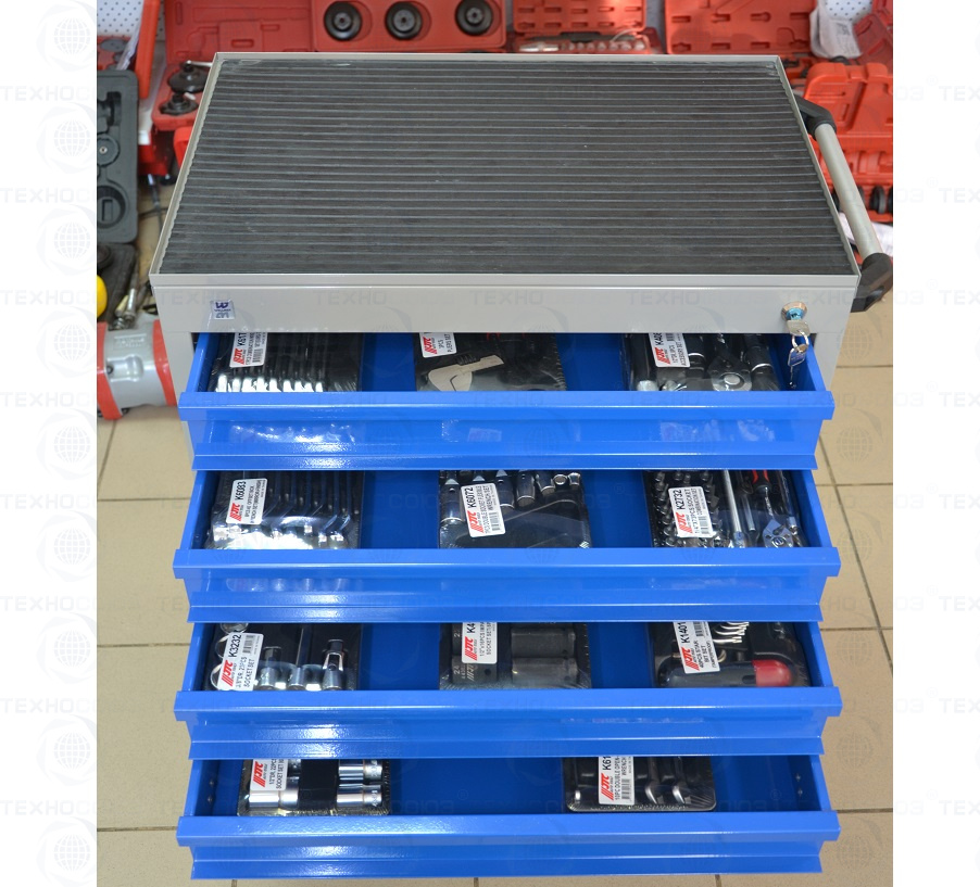 В комплект инструмента ПРЕМИУМ входит тележка инструментальная с 8 ящиками, молотки, набор для удаления любого крепежа, разрезные, накидные, комбинированные и рожковые ключи, набор шестигранников TOPX и бит, наборы головок и отверток, клещи, бокорезы, утконосы, щипцы и набор трещоток и напильников - этот набор инструментов премиум класса справится с любой поставленной задачей! Применяется при работе на премиальных дилерских автосервисах и СТО.
