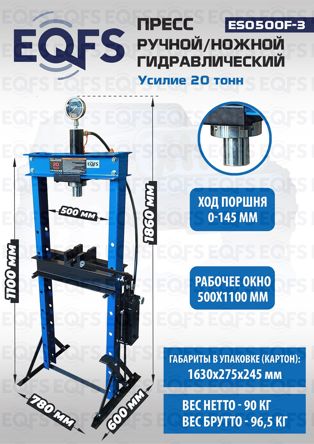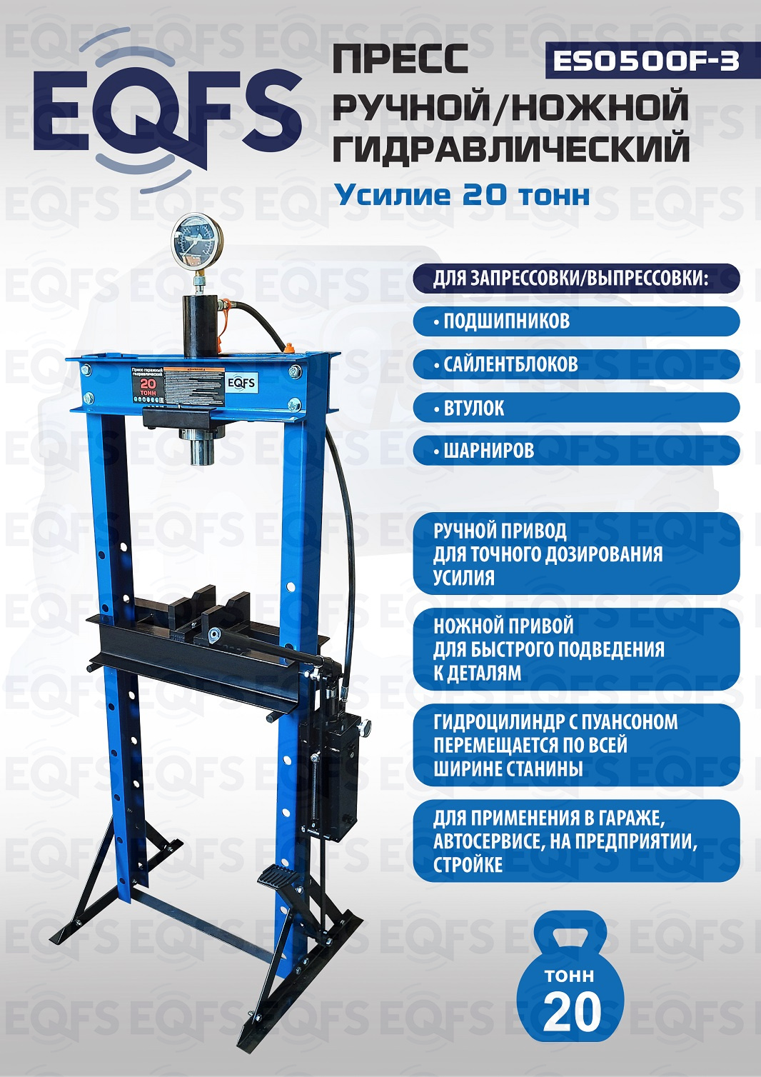 Пресс гидравлический ручной/ножной, 20 тонн, ES0500F-3