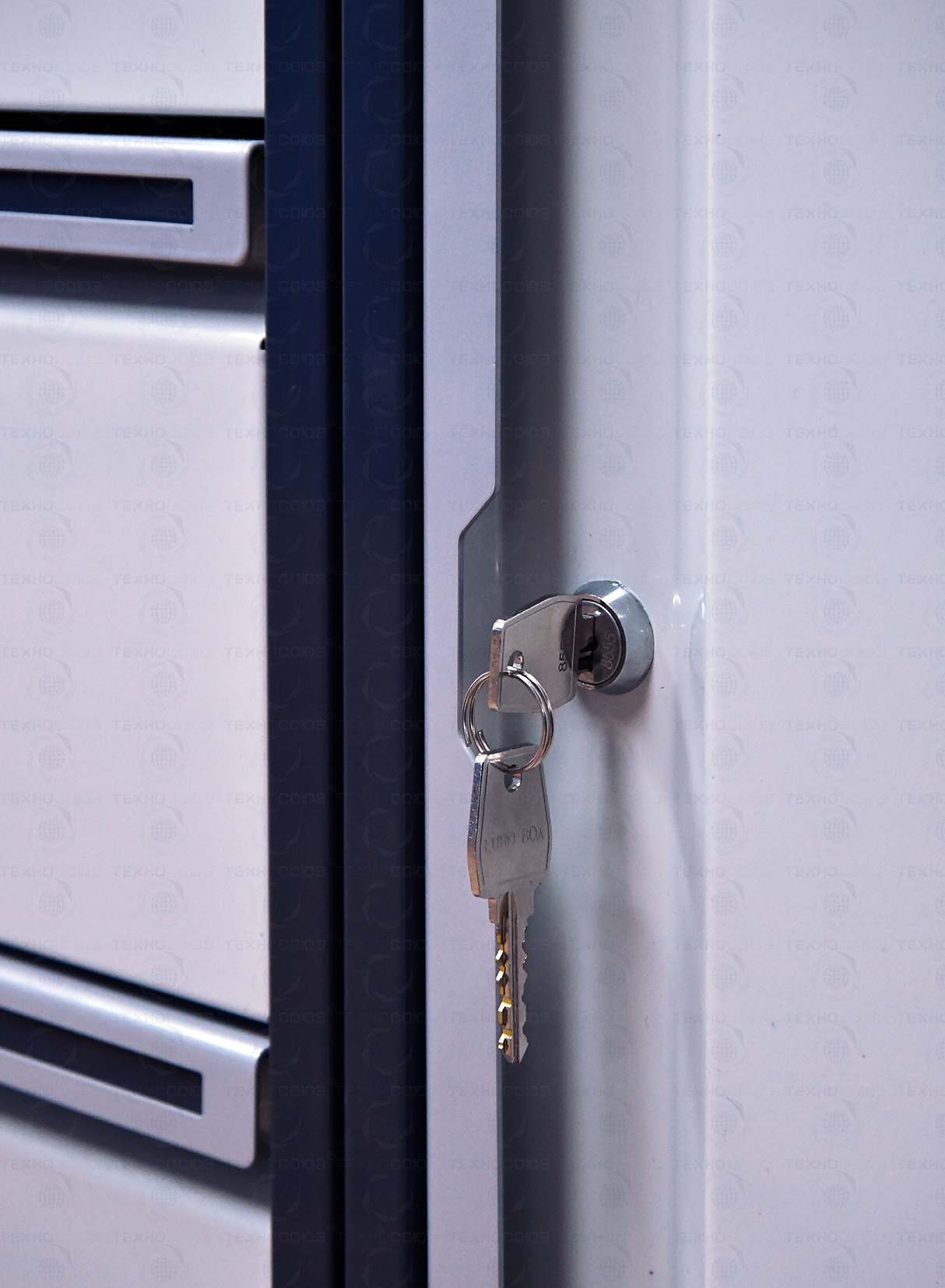 Модули с ящиками снабжены общим центральным замком с поворотом ригеля 180 градусов и подпружиненной тягой. В комплекте два ключа для каждого замка.
