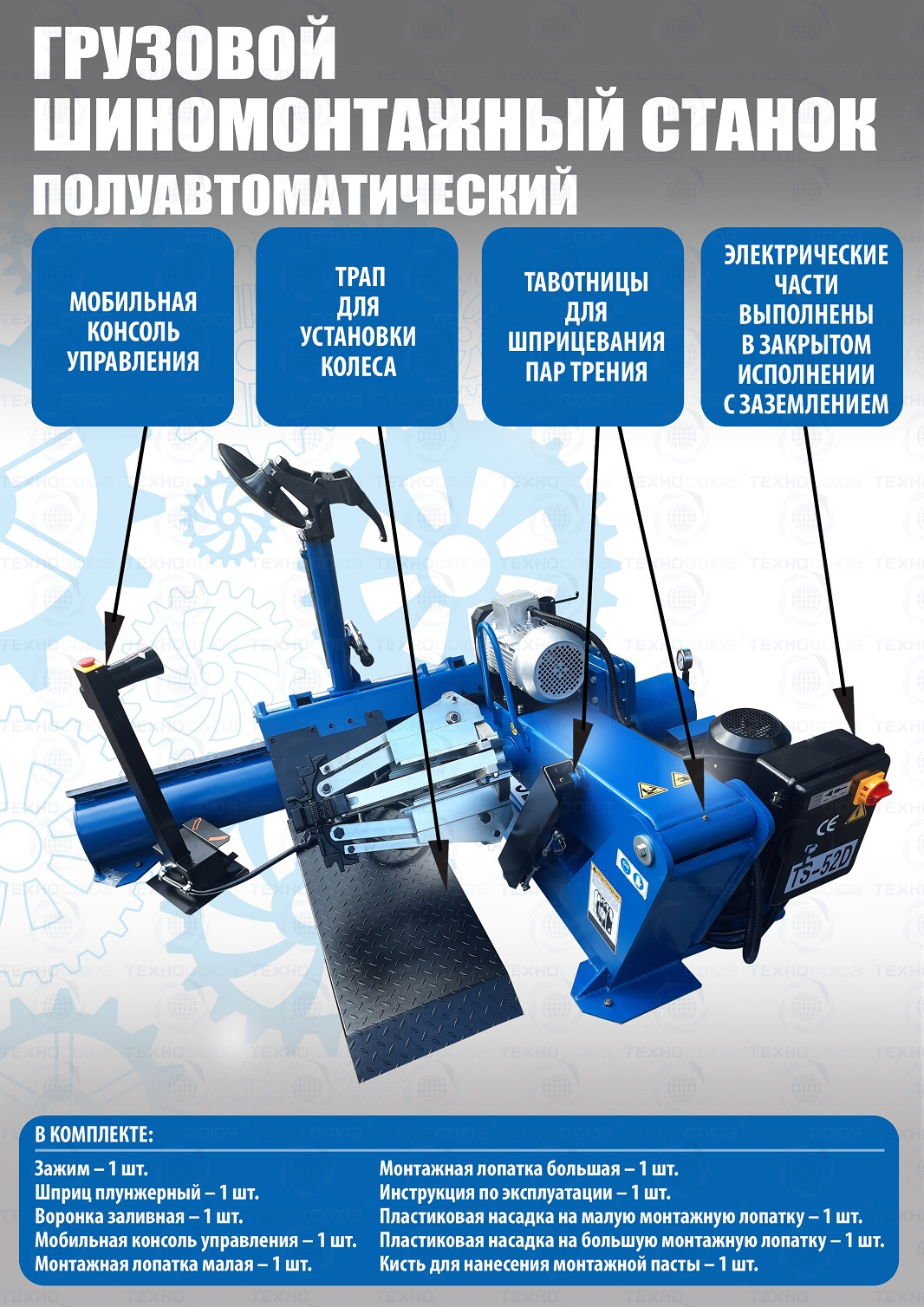 TS-52D Шиномонтажный стенд грузовой c удлинителями 14-52”, 380В
